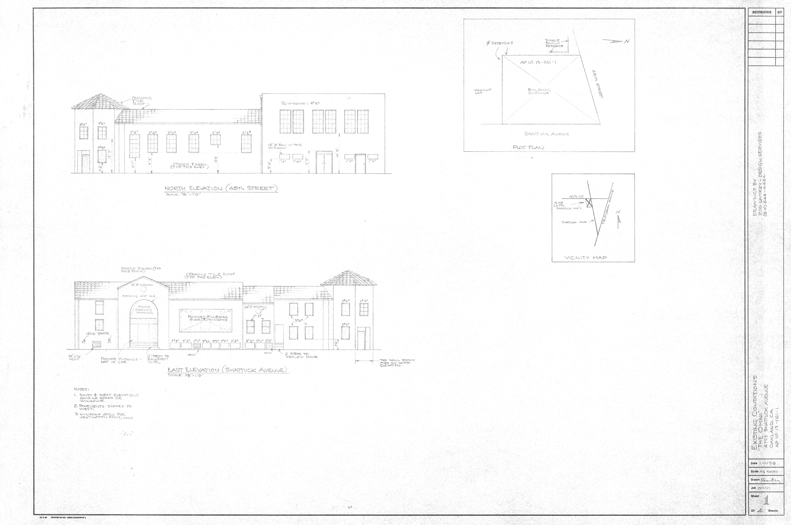 Detailed drawings 1/11/96 by Rod Lamkey - Design Services North Elevation (48th Street) East Elevation (Shattuck Avenue) Plot Plan Vicinity Map