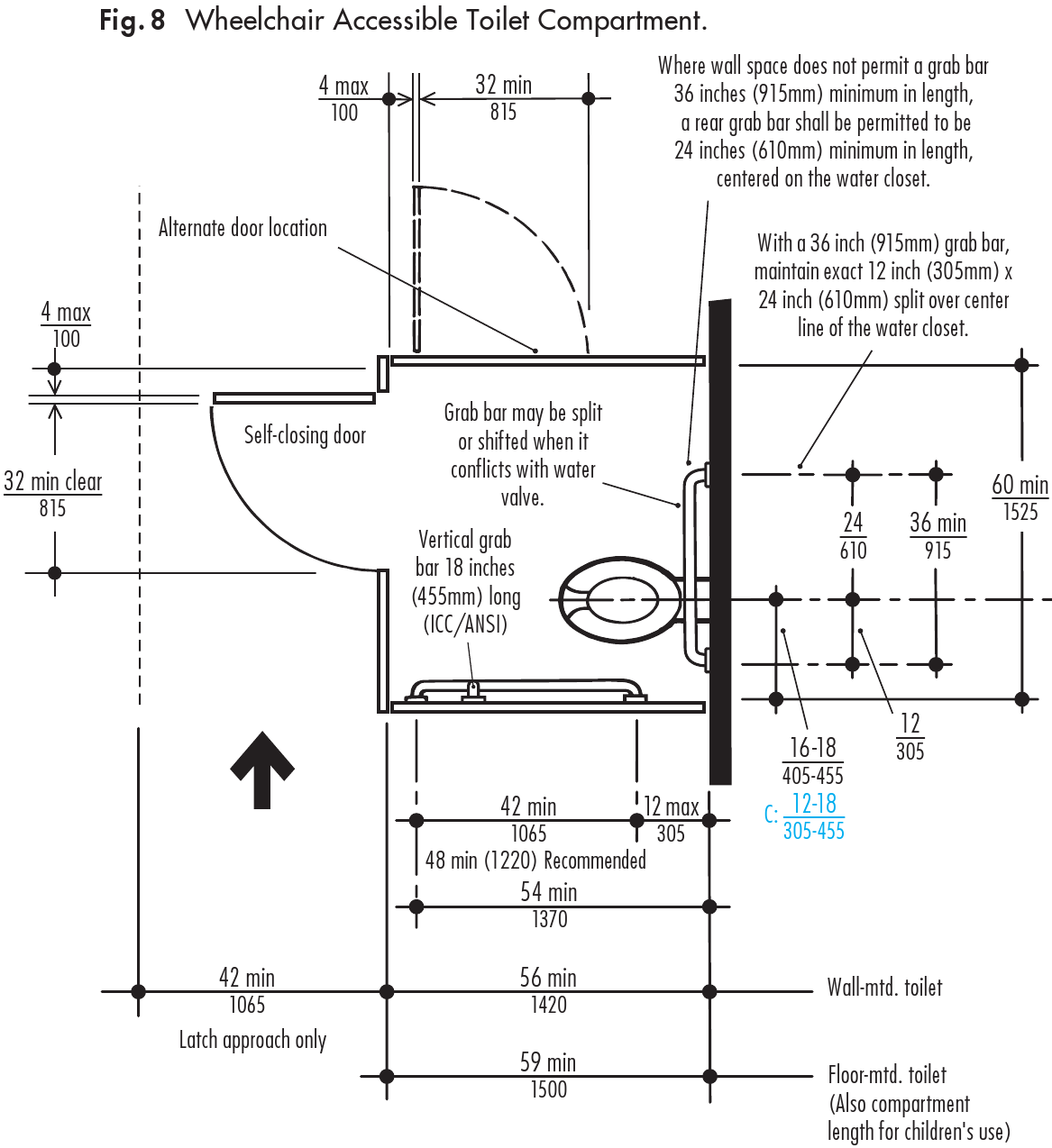 Fig.8 Wheelchair Accessible Toilet Compartment - from http://www.bobrick.com/Documents/PlanningGuide.pdf